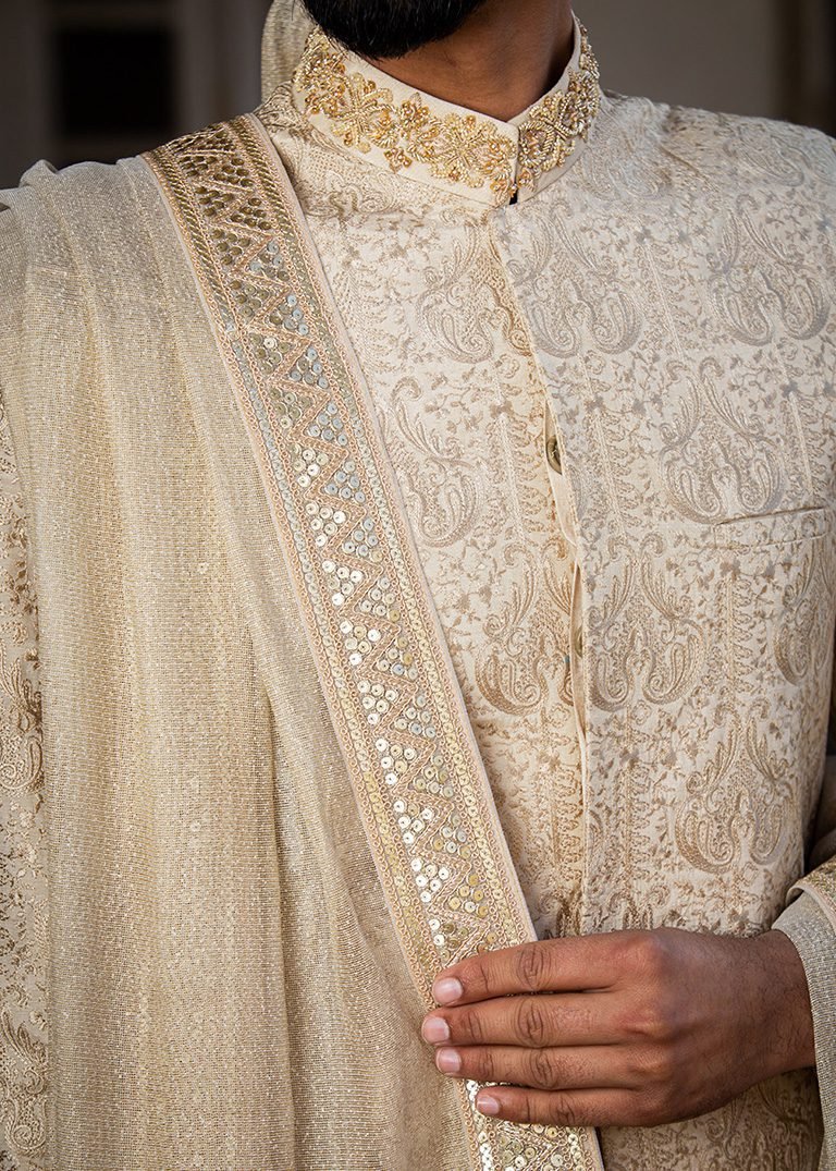 Fabric: Embroided raw silk fabric